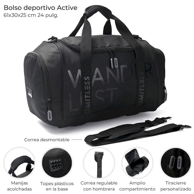 BOLSO WANDERLUST ACTIVE LIMITLESS NEGRO CON LOGO