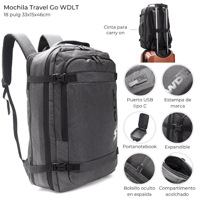 MOCHILA ESPALDA WANDERLUST TRAVEL GO GRIS 46CM 18 PULGADAS
