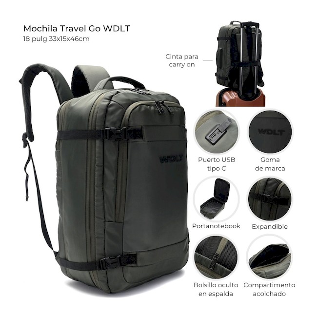 MOCHILA ESPALDA WANDERLUST TRAVEL GO NEGRO 46CM 18 PULGADAS