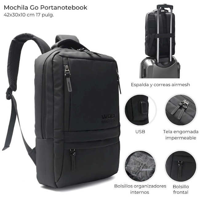 MOCHILA ESPALDA WANDERLUST EJECUTIVA GO NEGRO 43CM 17 PULGADAS